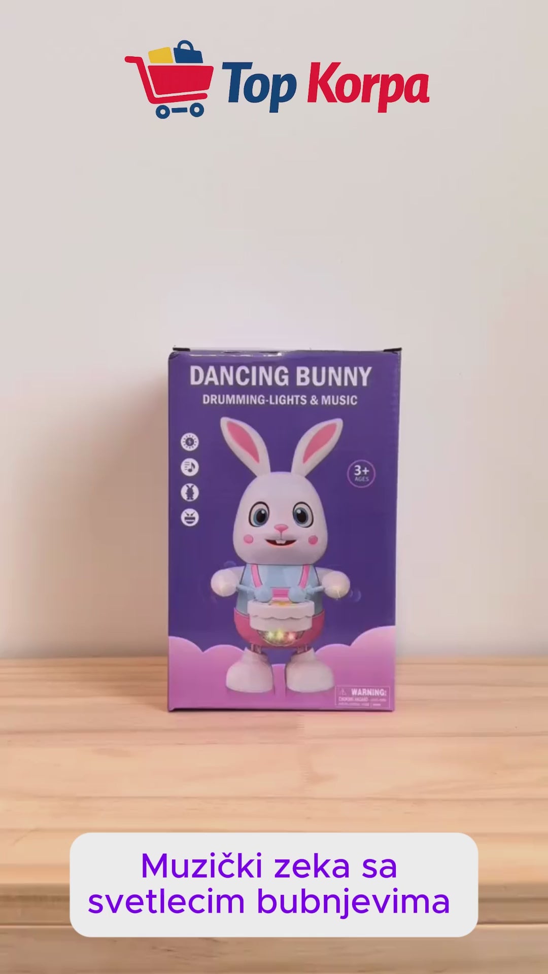 Muzički zeka koji se kreće, svetli, svira bubjneve..